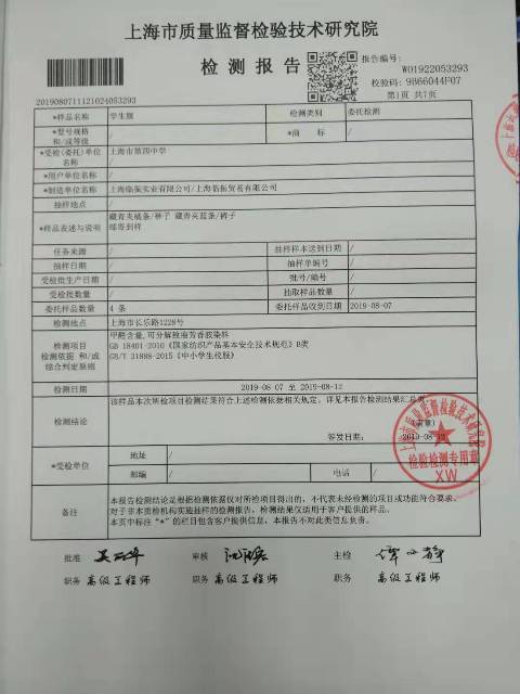 校服检测报告