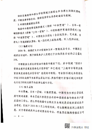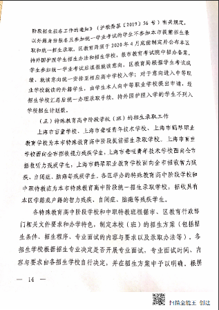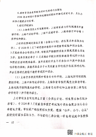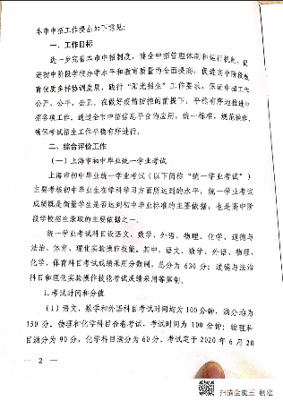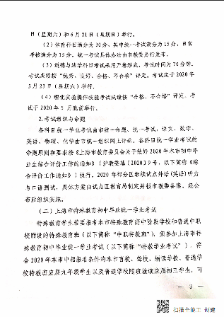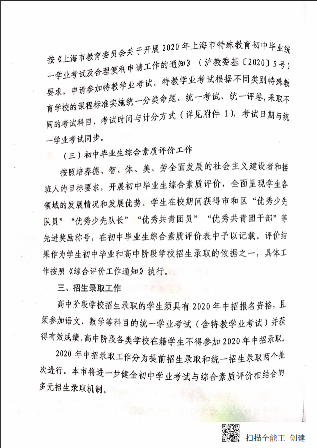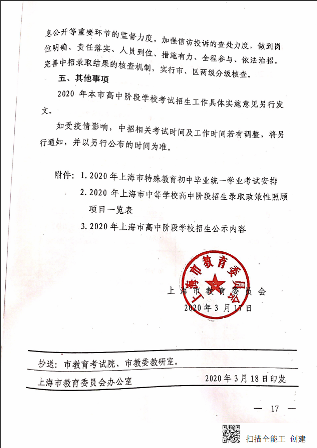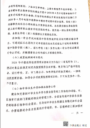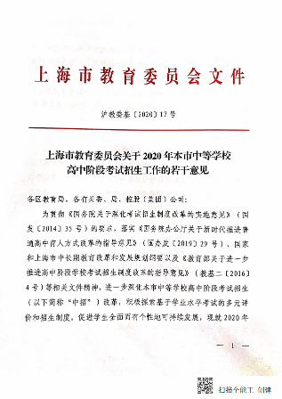 2020年上海市中等学校高中阶段考试招生工作若干意见
