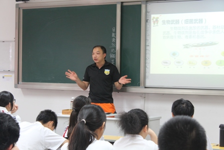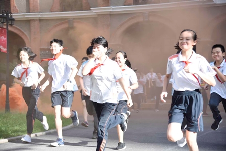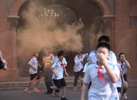 早晨7点45分,预先警报响起,广大师生立即进入战备状态,关闭电器设备,切断电源,各指挥岗位老师携带指示棒,着醒目背心迅速到达各自指挥岗位,做好了疏散前的准备。7点49分空袭警报拉响,校园内浓烟四起,疏散指令下达,全校1600多位学生及100多位教职员工,按照预定计划,快速、安全、有序的疏散到了操场,并通过三级报告的形式全员清点人数,防止人员的遗漏。