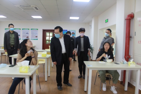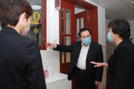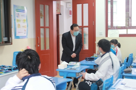2020年5月6日早上市教卫工作党委书记沈炜在徐汇区教育工作党委书记姚黎红、徐汇区教育工作党委副书记杨震青、上海市第四中学校长史正伟的陪同下,实地检查上海市第四中学初二、高二年级返校复学情况。市领导一行先后查看了校门口、留观点、卫生室、食堂、教室、教师办公室等处疫情防控的措施,还和学生、老师做了简单的交流。