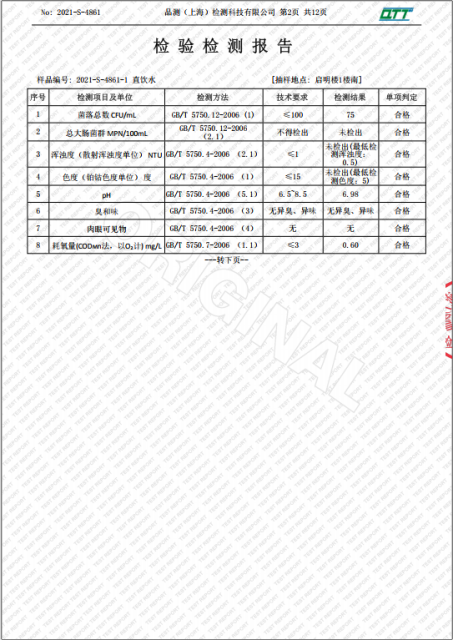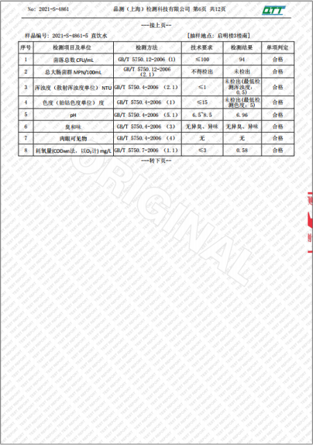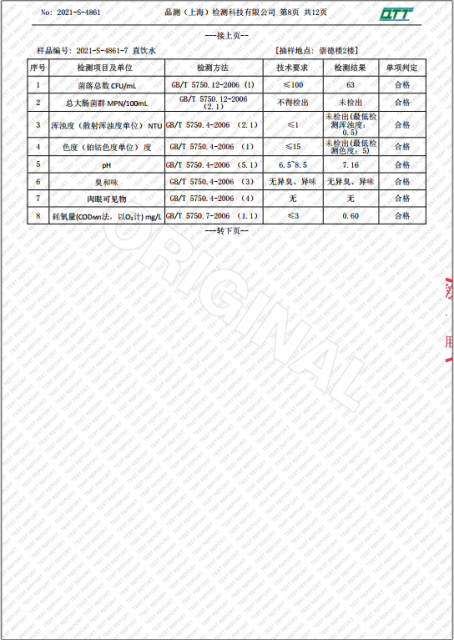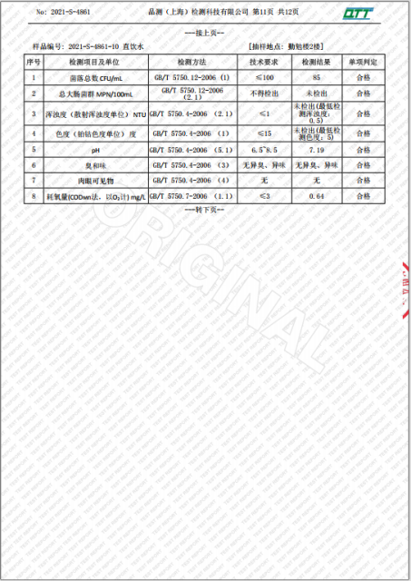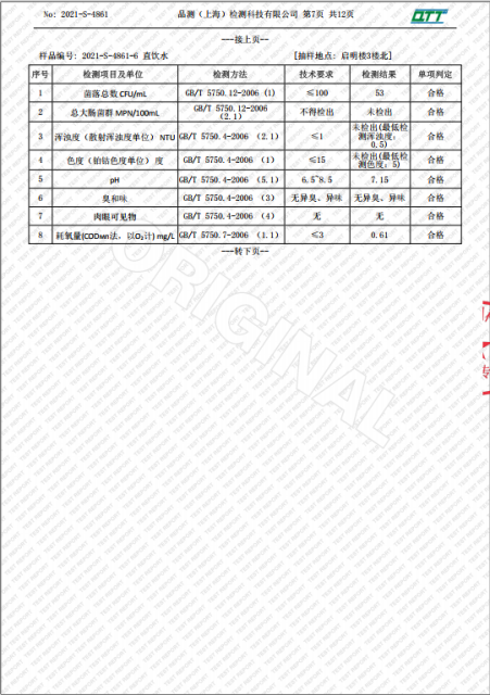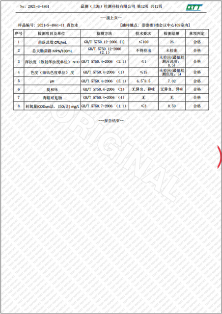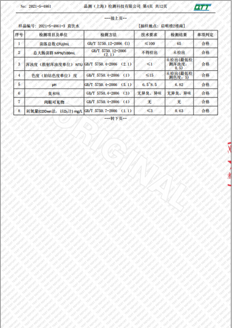 上海市第四中学九月水质检测报告(天钥桥路校区)