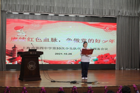 2021年10月26日中午,上海市第四中学召开了第33次少先队代表大会预备会议,由校少工委委员和队员代表参加。少代会是由学校大队部召开,由少先队员代表为主体参加,反映少先队员意志和愿望的会议。少先队代表大会有商讨、决定一个时期队内重大事务,监督各级少先队组织工作,选举产生队工作领导委员会的重要职能。通过少代会的举办,让队员们学习民主、发扬民主、培养民主能力和主人翁思想。