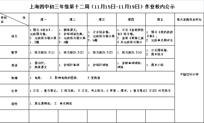 2021年11月15日-19日学生作业公示