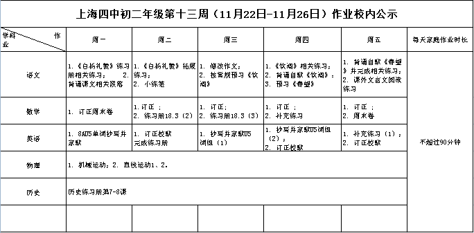 2021年11月22日-26日学生作业公示