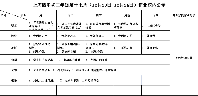 2021年12月20日-24日学生作业公示