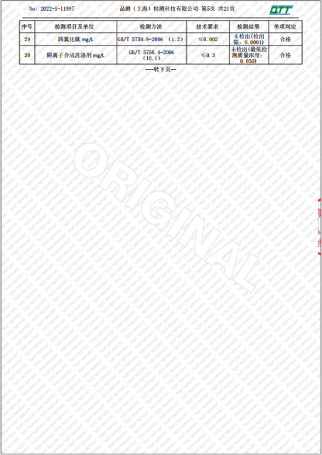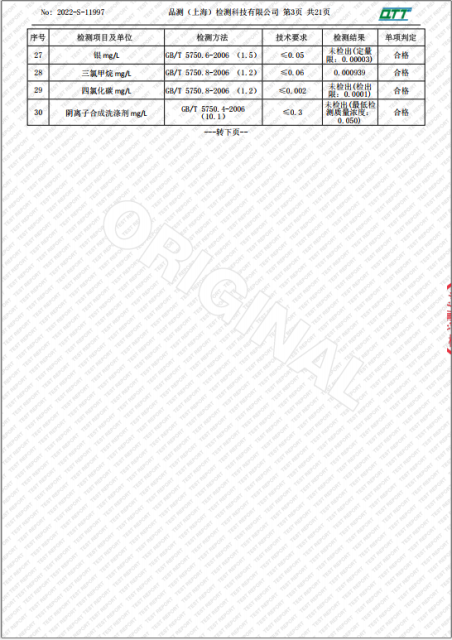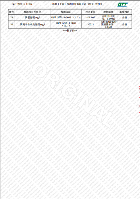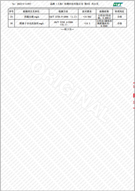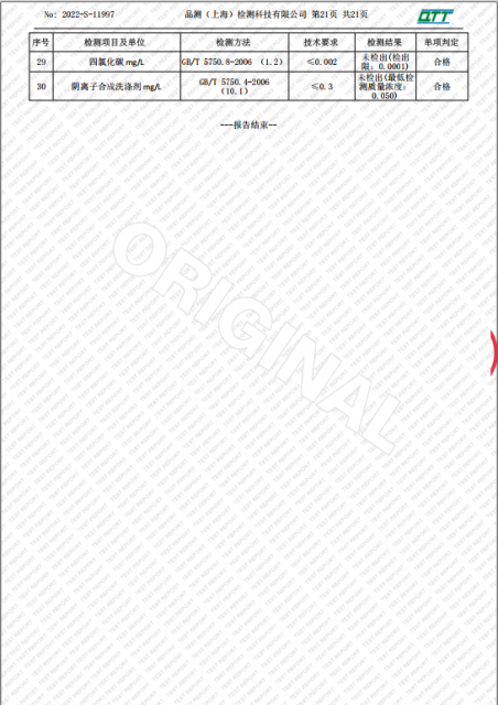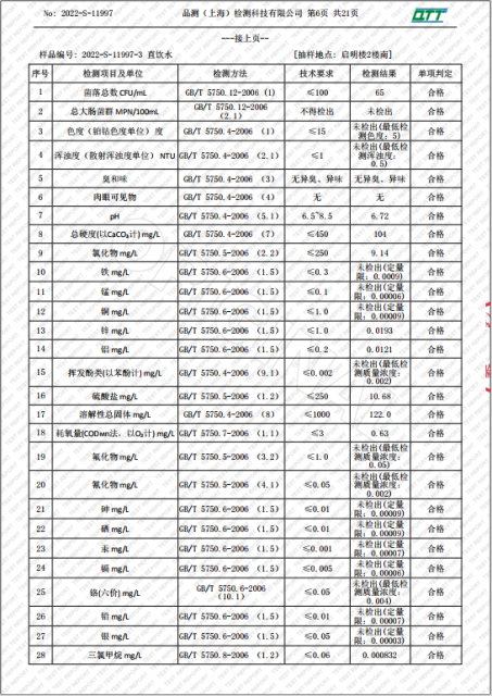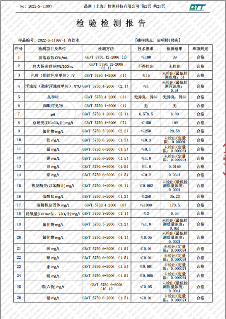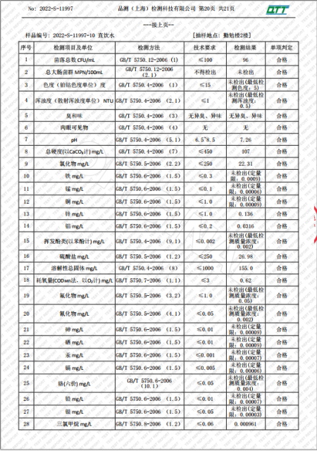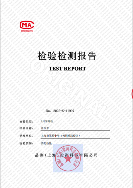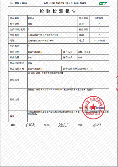 上海市第四中学二月水质检测报告(天钥桥路校区)