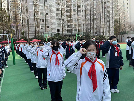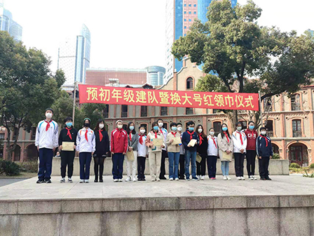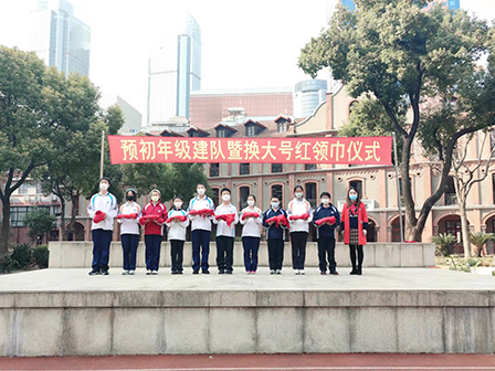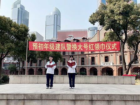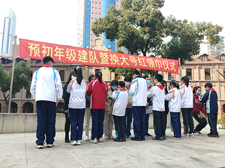2022年3月11日下午,上海四中举行了“预初年级建队暨换大号红领巾仪式”。