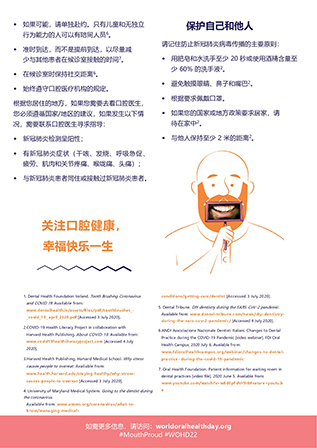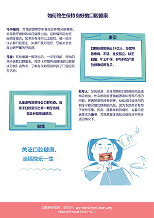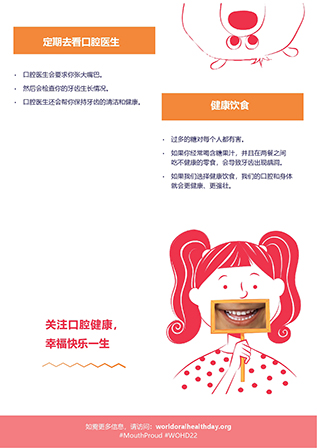 3月20日是世界口腔健康日(WOHD)。不良的口腔健康状况影响着全球近35亿人,并造成深远的影响,然而人们往往意识不到口腔疾病能给生活带来的严重影响。口腔疾病会导致疼痛不适,影响人们吃饭、说话、自信心并影响生活质量。我们呼吁所有人行动起来,关注全球口腔健康。