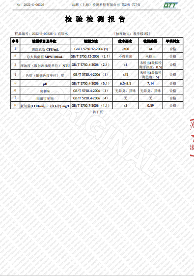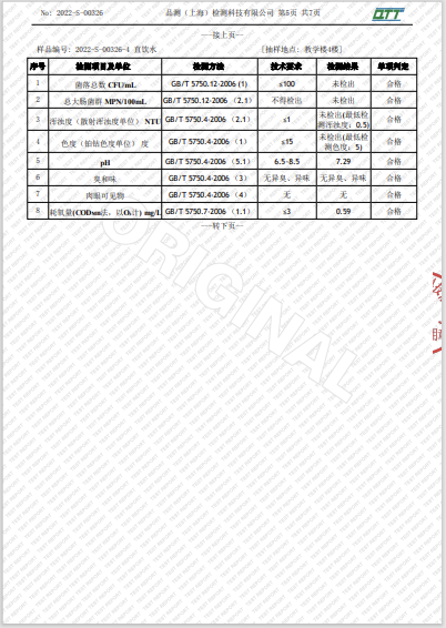 上海市第四中学三月水质检测报告(宛平南路校区)