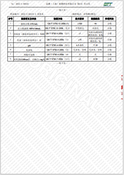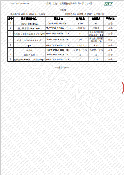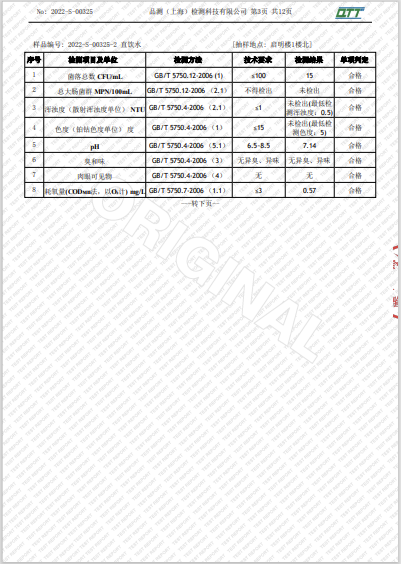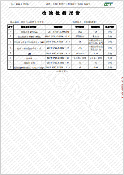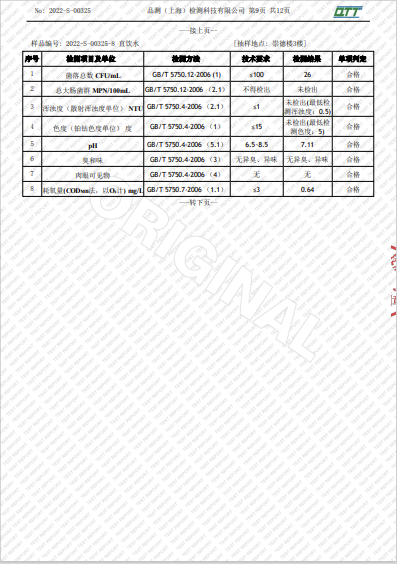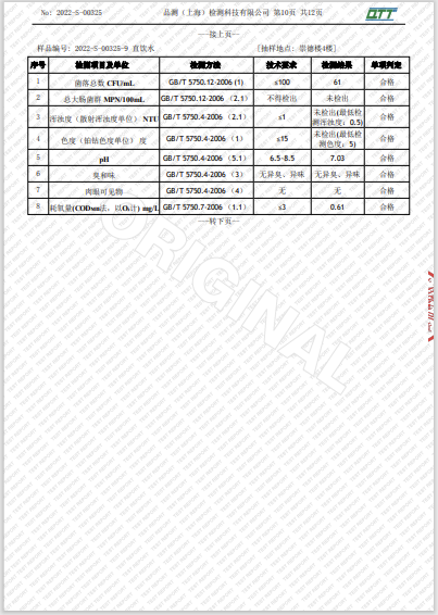 上海市第四中学三月水质检测报告(天钥桥路校区)