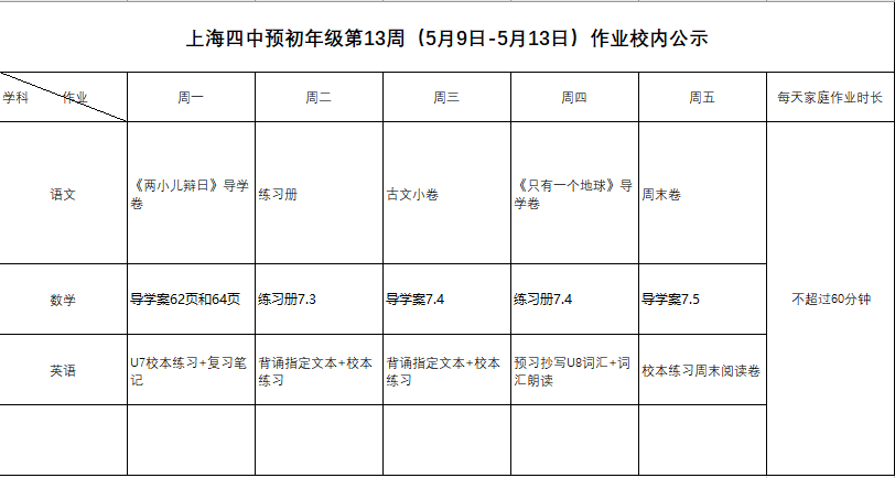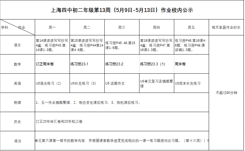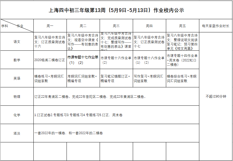2022年5月9日-13日学生作业公示