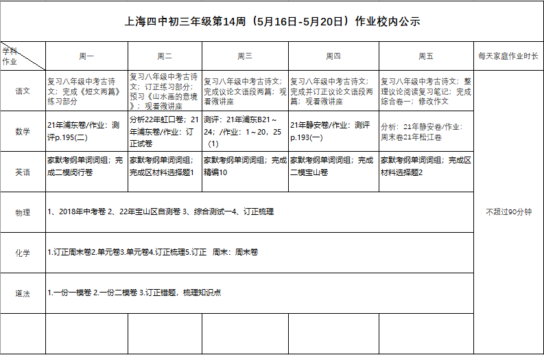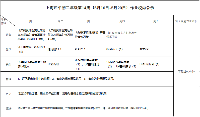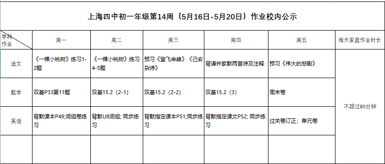 2022年5月16日-20日学生作业公示