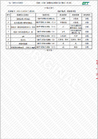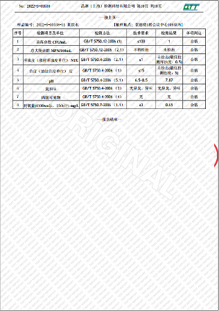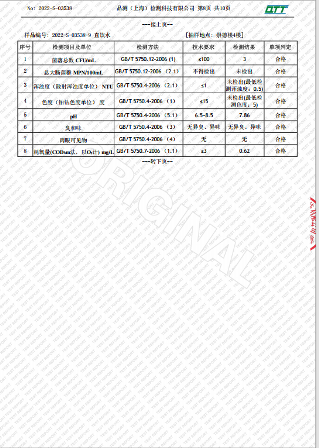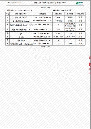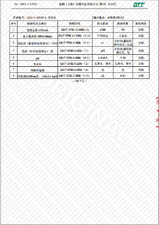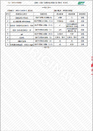 上海市第四中学五月水质检测报告(天钥桥路校区)