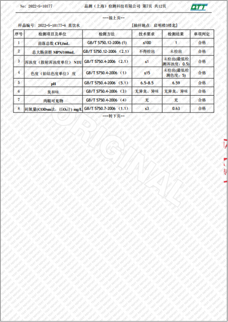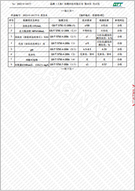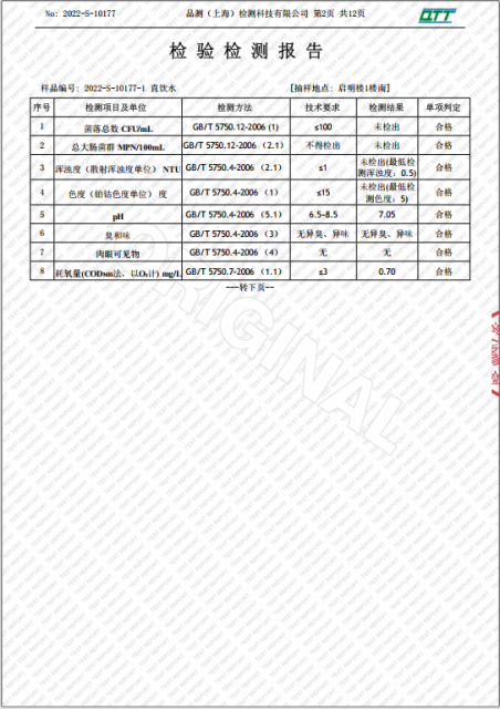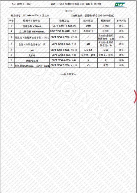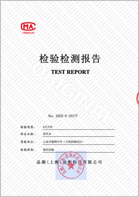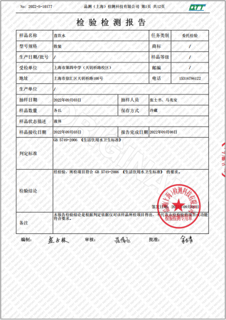 上海市第四中学九月水质检测报告(天钥桥路校区)