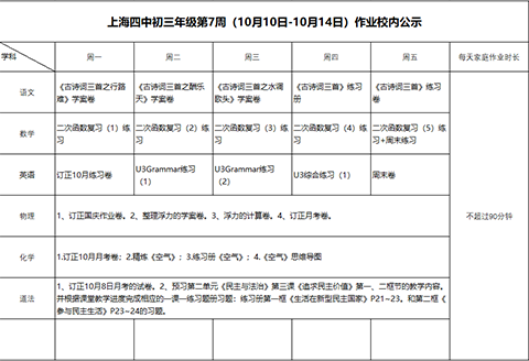 2022年10月10日-14日学生作业公示