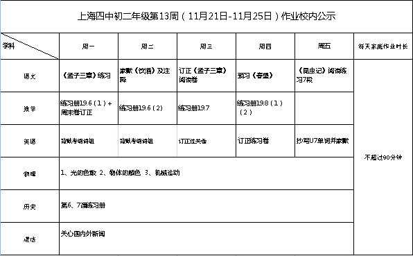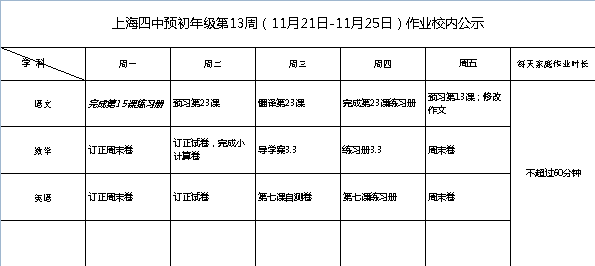2022年11月21日-25日学生作业公示