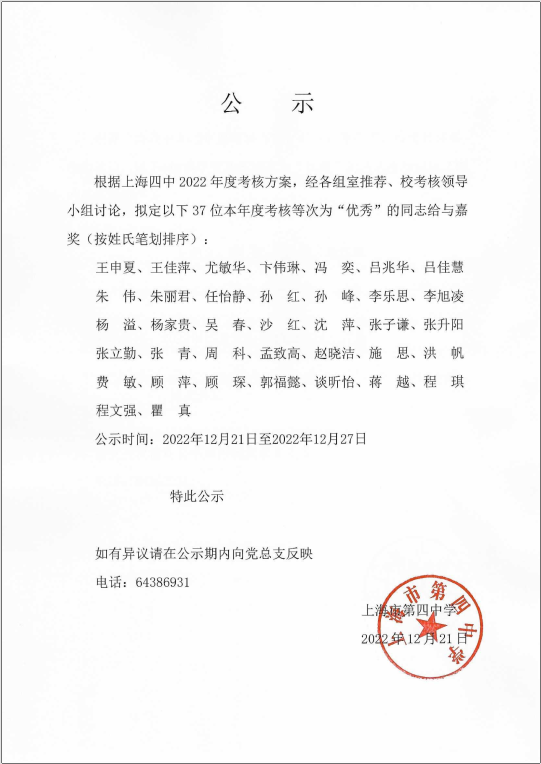 2022年度考核公示
