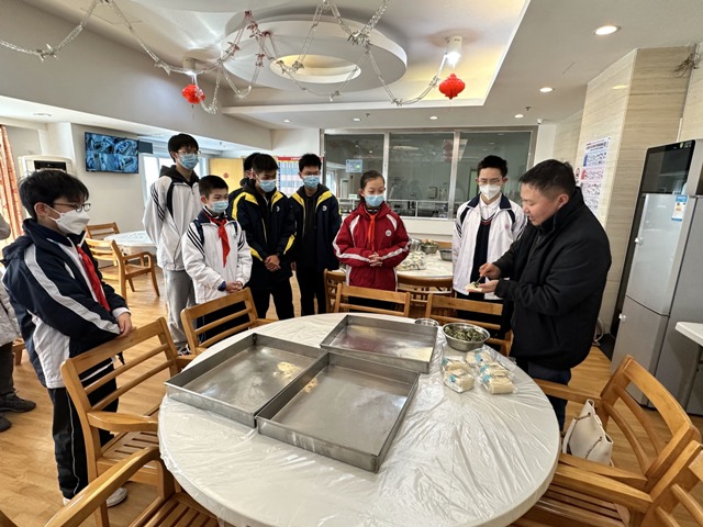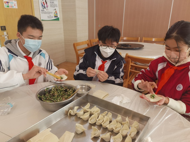 看着劳动成果,同学们不禁感慨,今天不仅参与了一次志愿服务活动,更掌握了一项劳动技能,收获满满。临走前,厨师叔叔还邀请大家品尝了自己的美食作品,融入了爱和暖意的馄饨,格外鲜美。后厨里,锅碗瓢盆已奏响了旋律,一大盆热气腾腾的馄饨不久将送到老人们的餐桌上。想象着老人围坐一圈,共同品尝馄饨的幸福画面,同学们的脸上都洋溢着笑容。