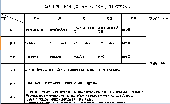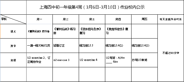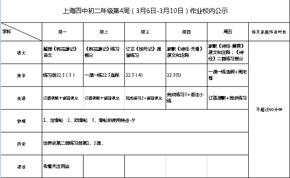 2023年3月6日-10日学生作业公示