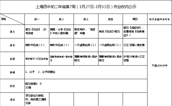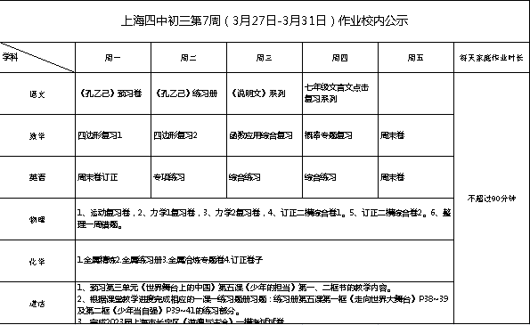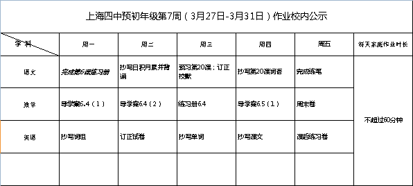 2023年3月27日-31日学生作业公示
