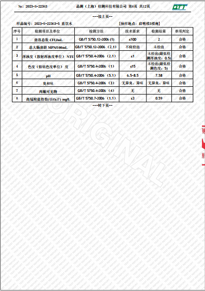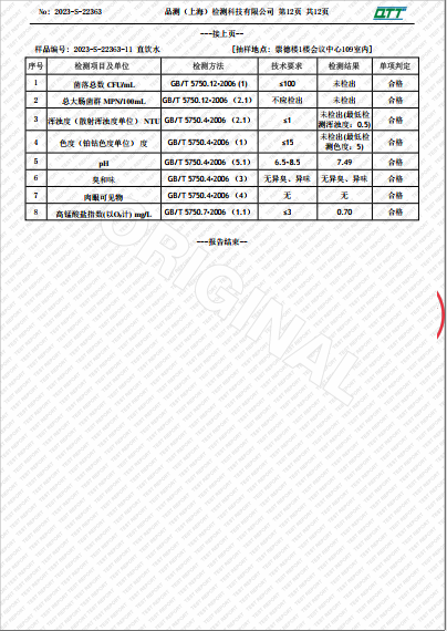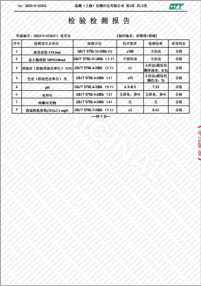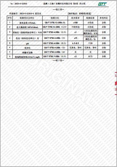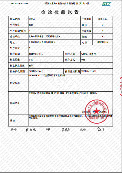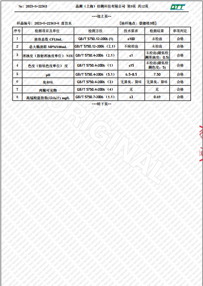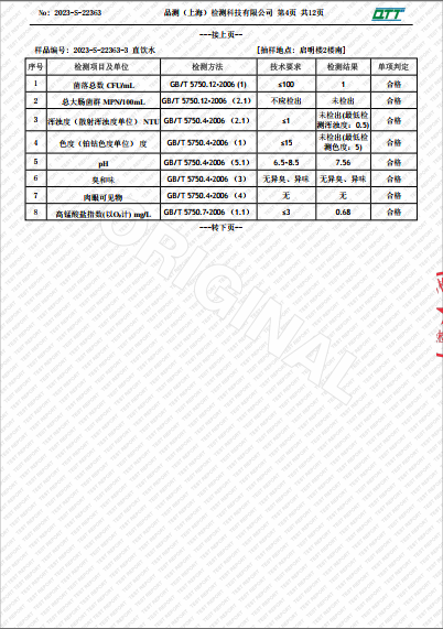 上海市第四中学四月水质监测报告(天钥桥路校区)