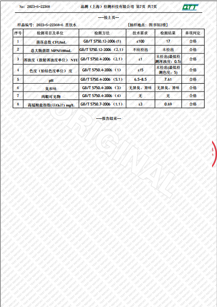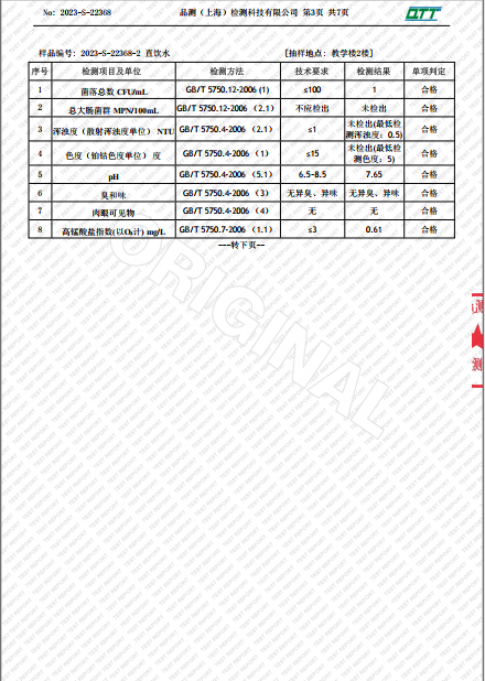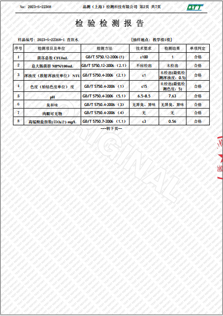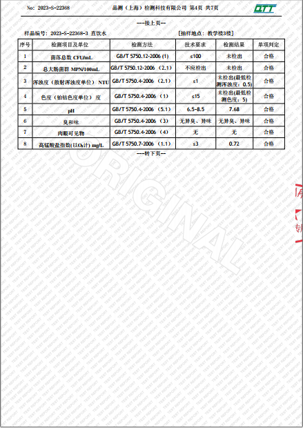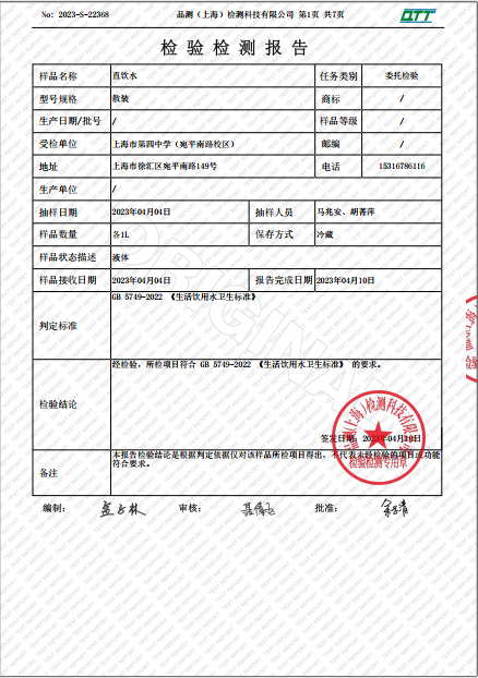 上海市第四中学四月水质监测报告(宛平南路校区)