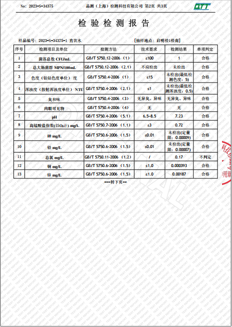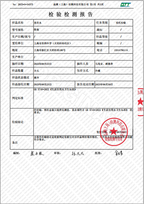 上海市第四中学八月水质检测报告(天钥桥路校区)-2