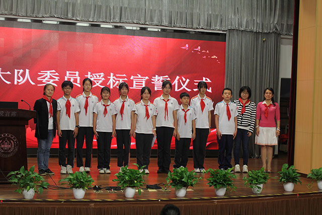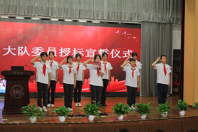 预备会议上选举产生了新一届大队委员,他们是预初年级尹北卡、周皓泽、徐紫悠,初一年级石一诺、张玥岑、郑懿卿,初二年级丁紫涵、李沛霖、洪进。会上,校少工委委员为新一届大队委员授标。一条杠杠一份责任,大队委员们在鲜艳的队旗下庄严宣誓,不负伙伴们的委托,勇担队组织的重任,尽心尽力为少先队服务。