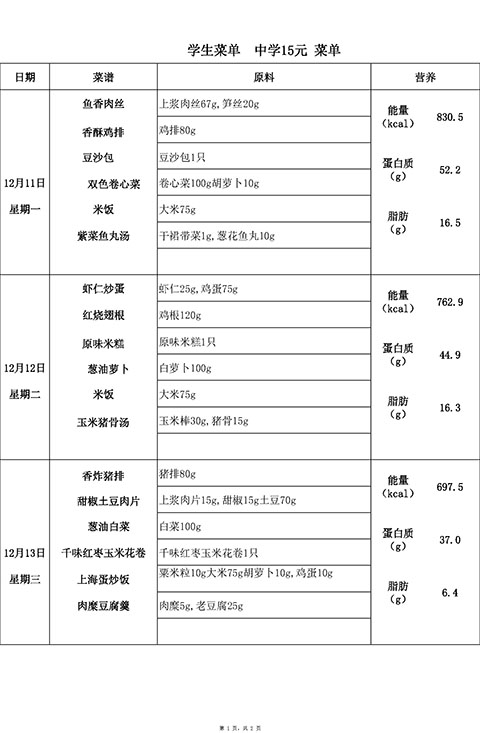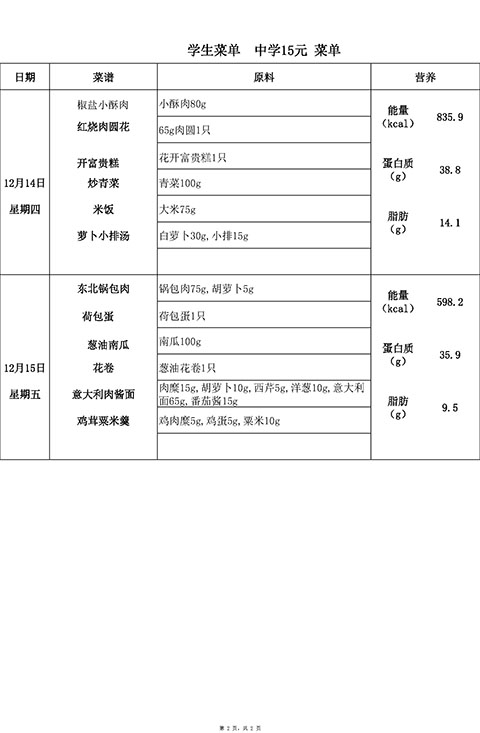2023年12月11日-12月15日学生菜单