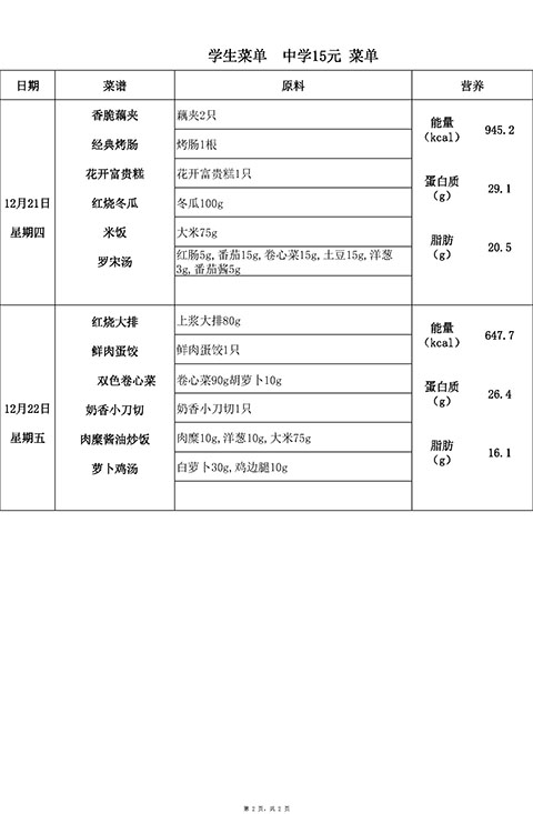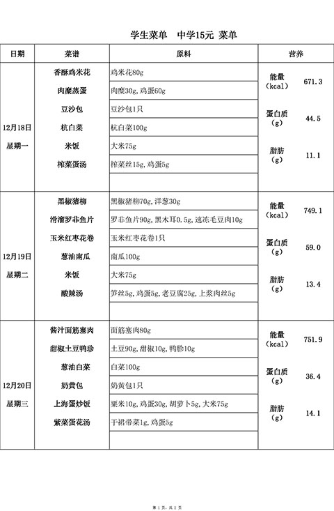 2023年12月18日-12月22日学生菜单