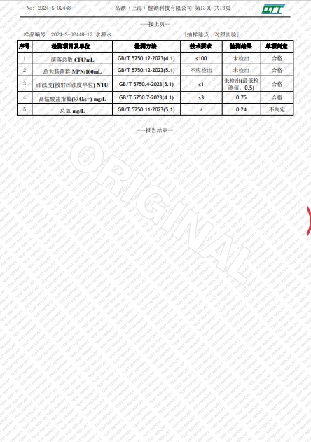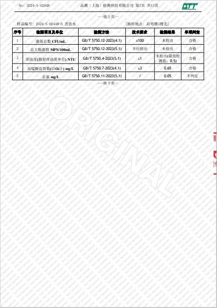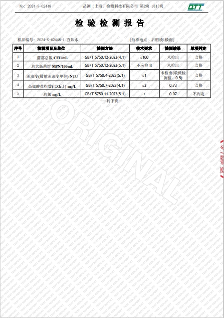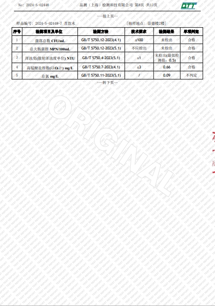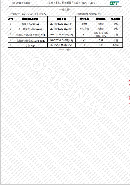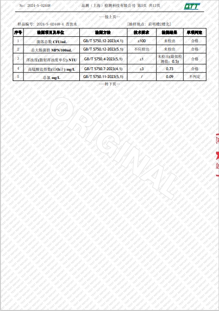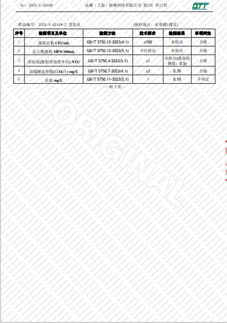 上海市第四中学三月水质检测报告(天钥桥路校区)