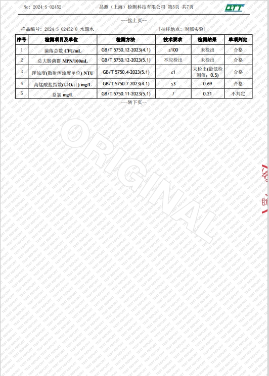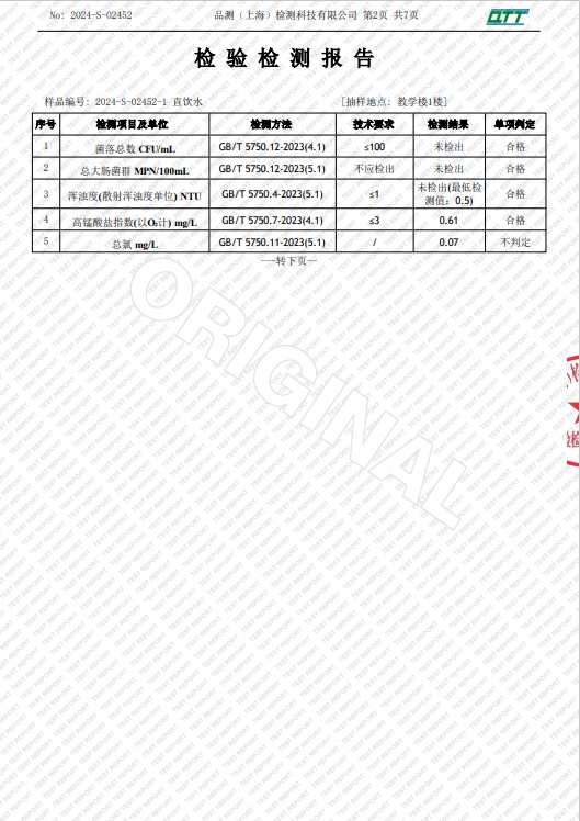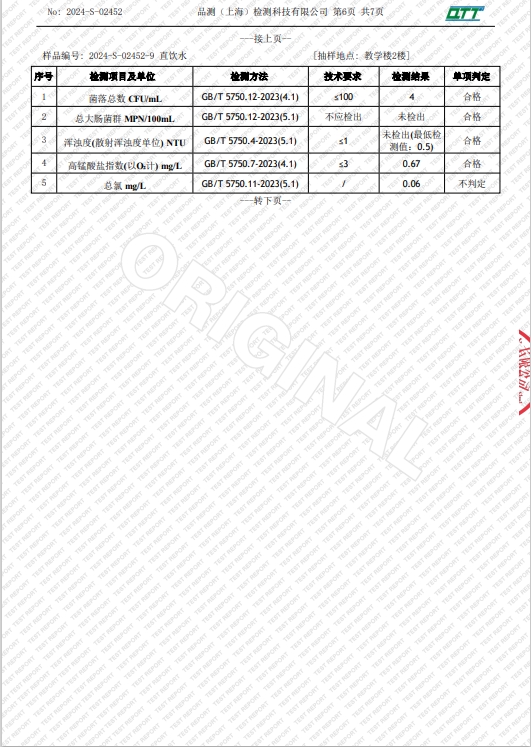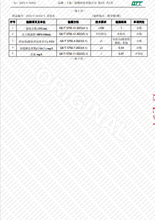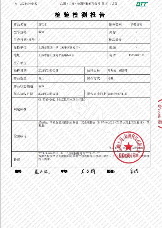 上海市第四中学三月水质检测报告(宛平南路校区)