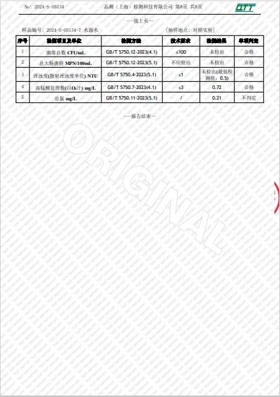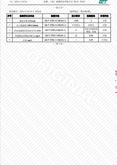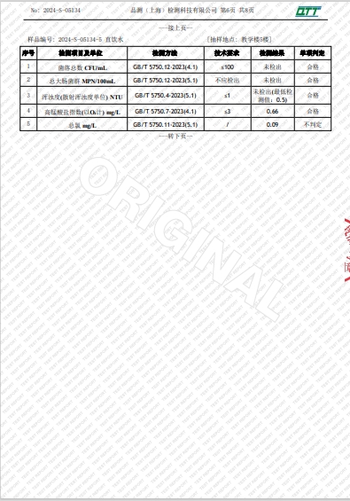上海市第四中学四月水质检测报告(宛平南路校区)