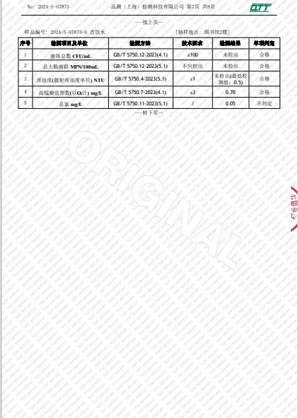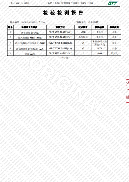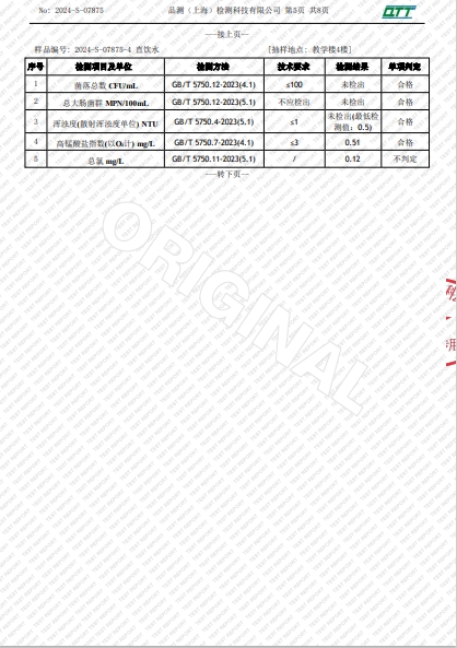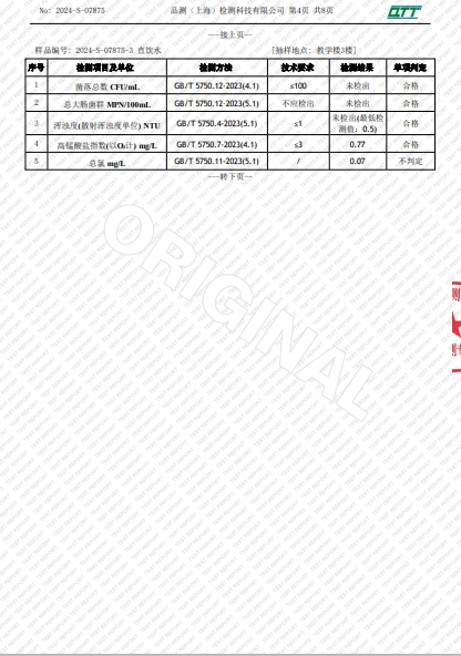 上海市第四中学五月水质检测报告(宛平南路校区)