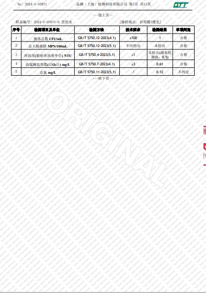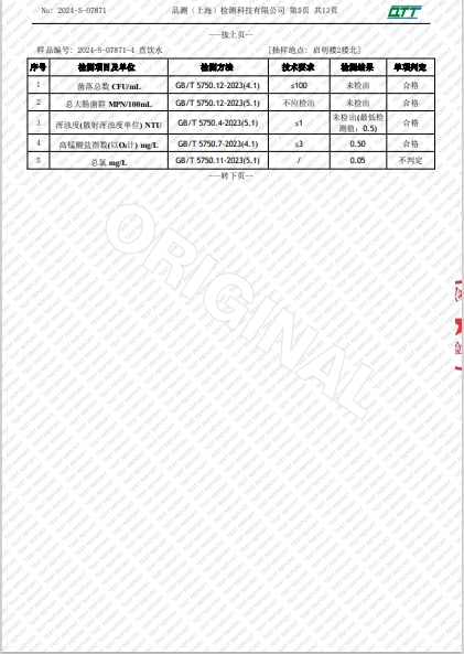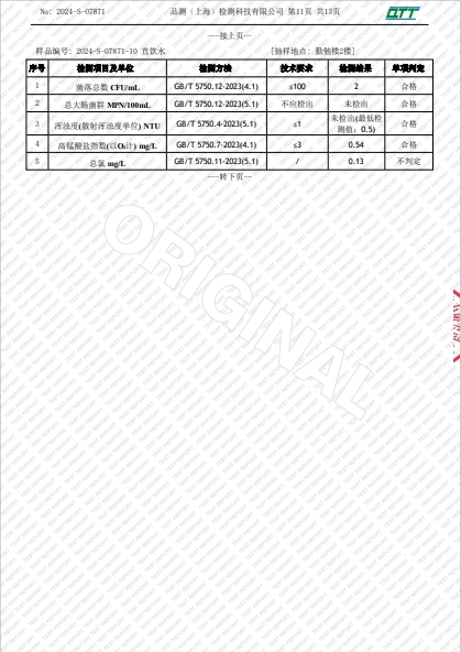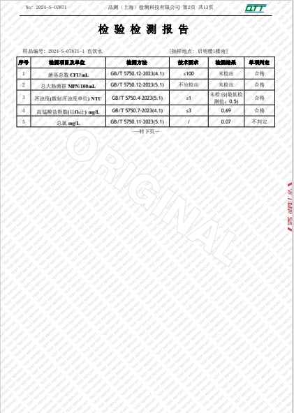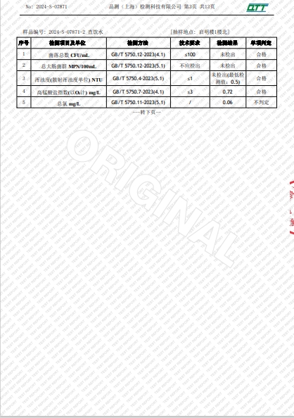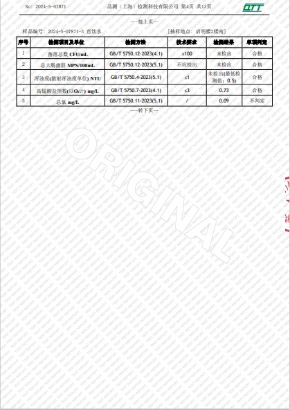 上海市第四中学五月水质检测报告(天钥桥路校区)