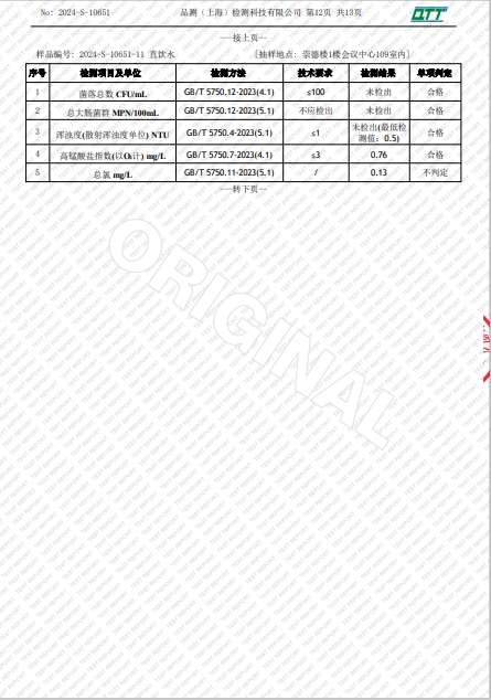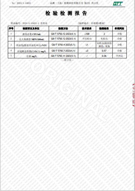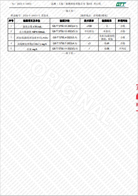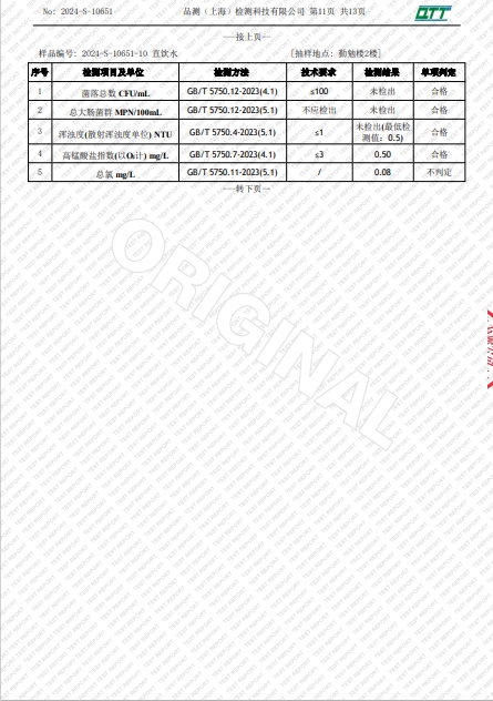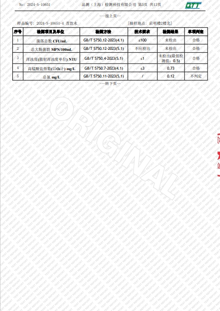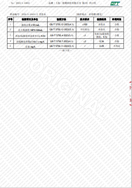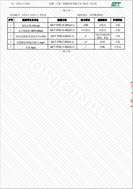 上海市第四中学六月水质检测报告(天钥桥路校区)