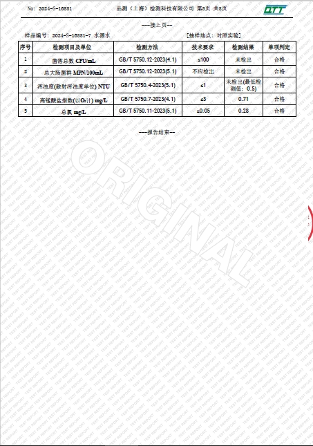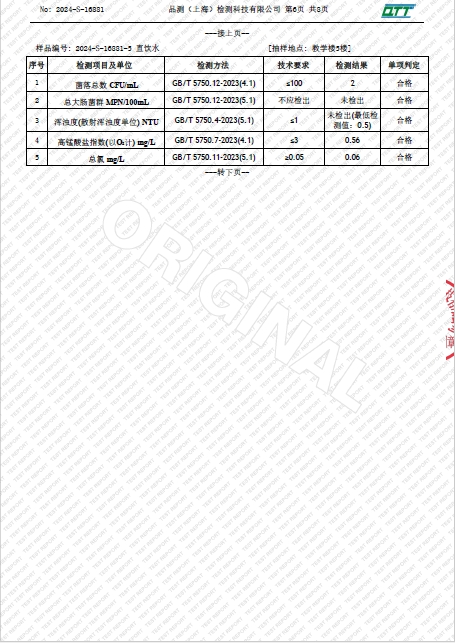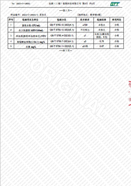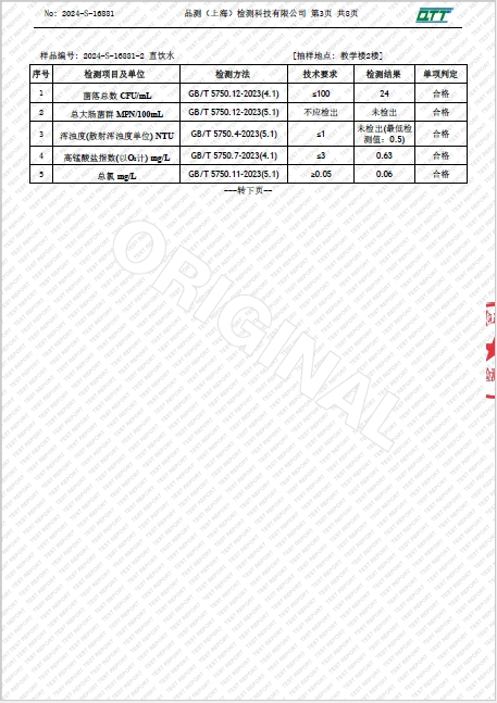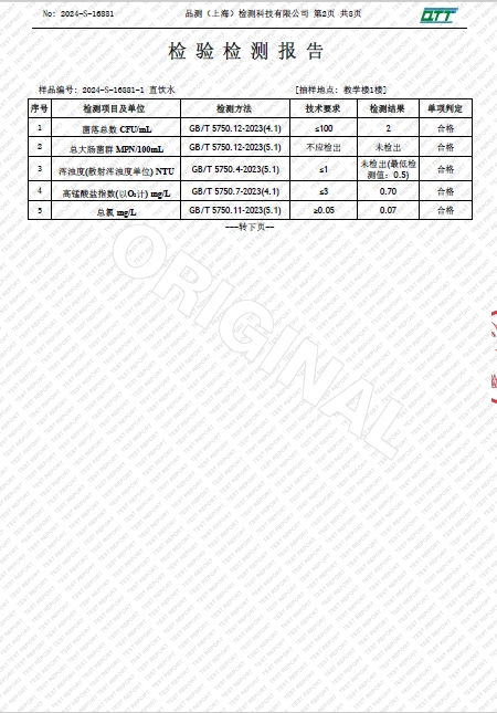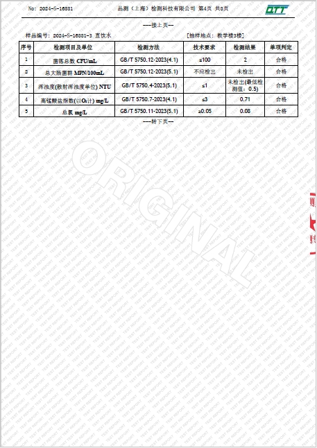 上海市第四中学九月水质检测报告(宛平南路校区)