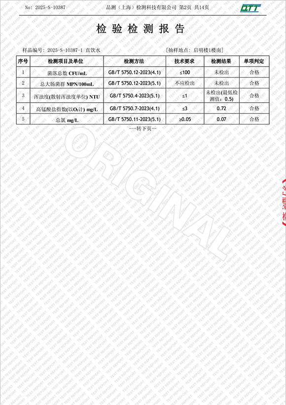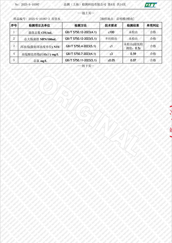 上海市第四中学五月水质检测报告(天钥桥路校区)