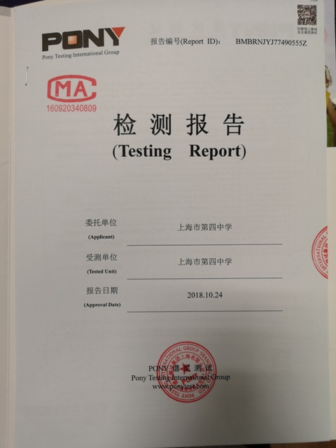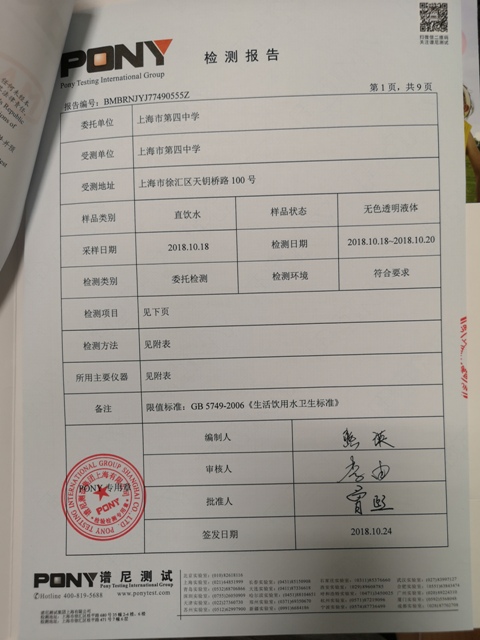 上海市第四中学11月水质检测报告
