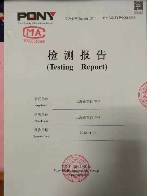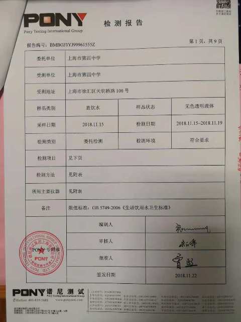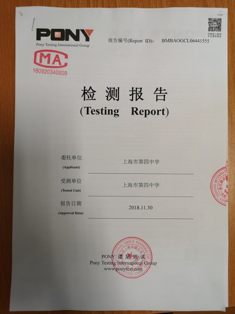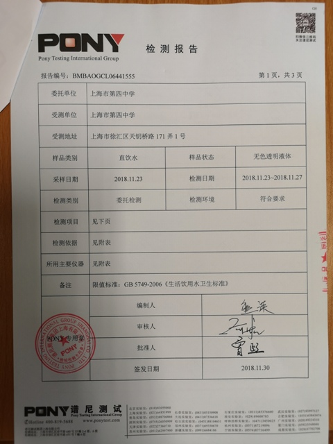 上海市第四中学12月水质检测报告